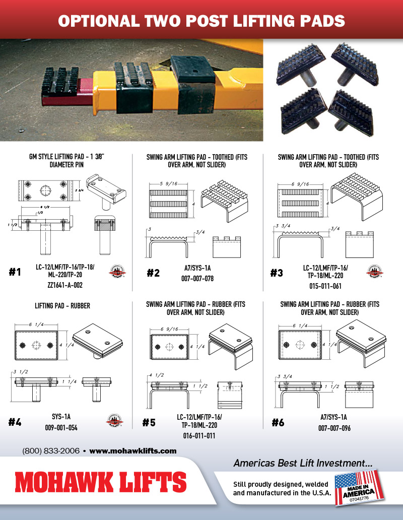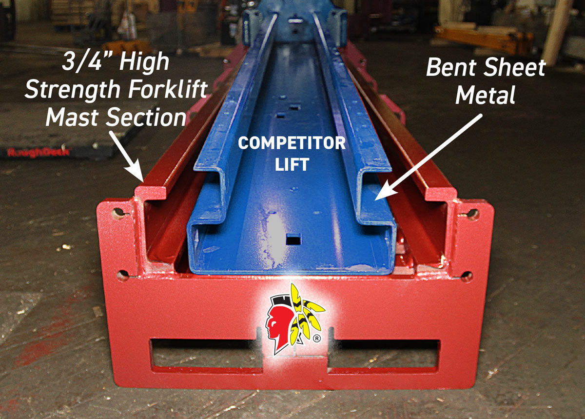 Mohawks 10,000 lb. lift uses ¾” high-strength forklift mast steel columns (red lift, above), vs. competitor 12,000 lb. lifts that use bent sheet metal columns (blue lift, above).Options & Accessories
