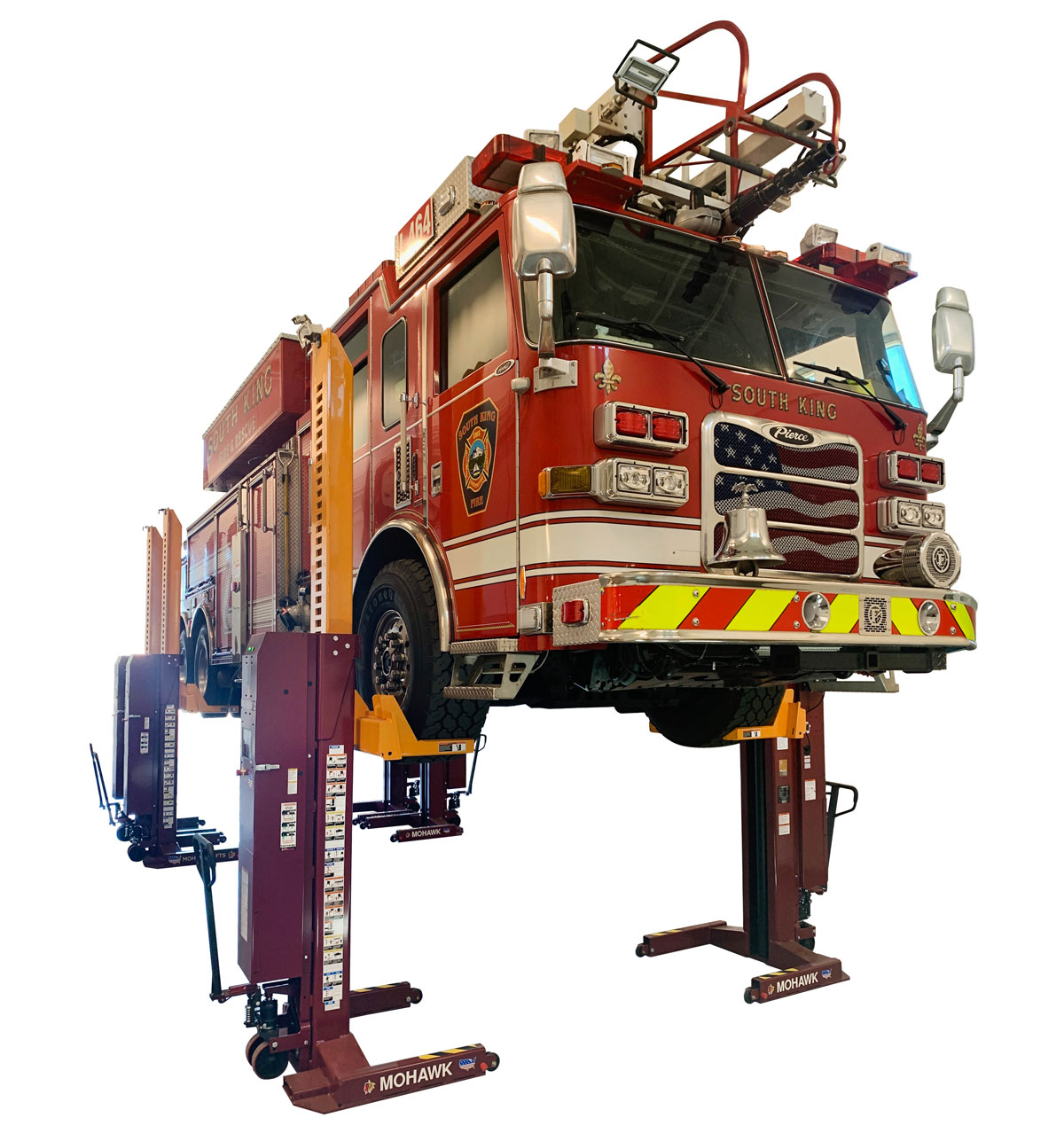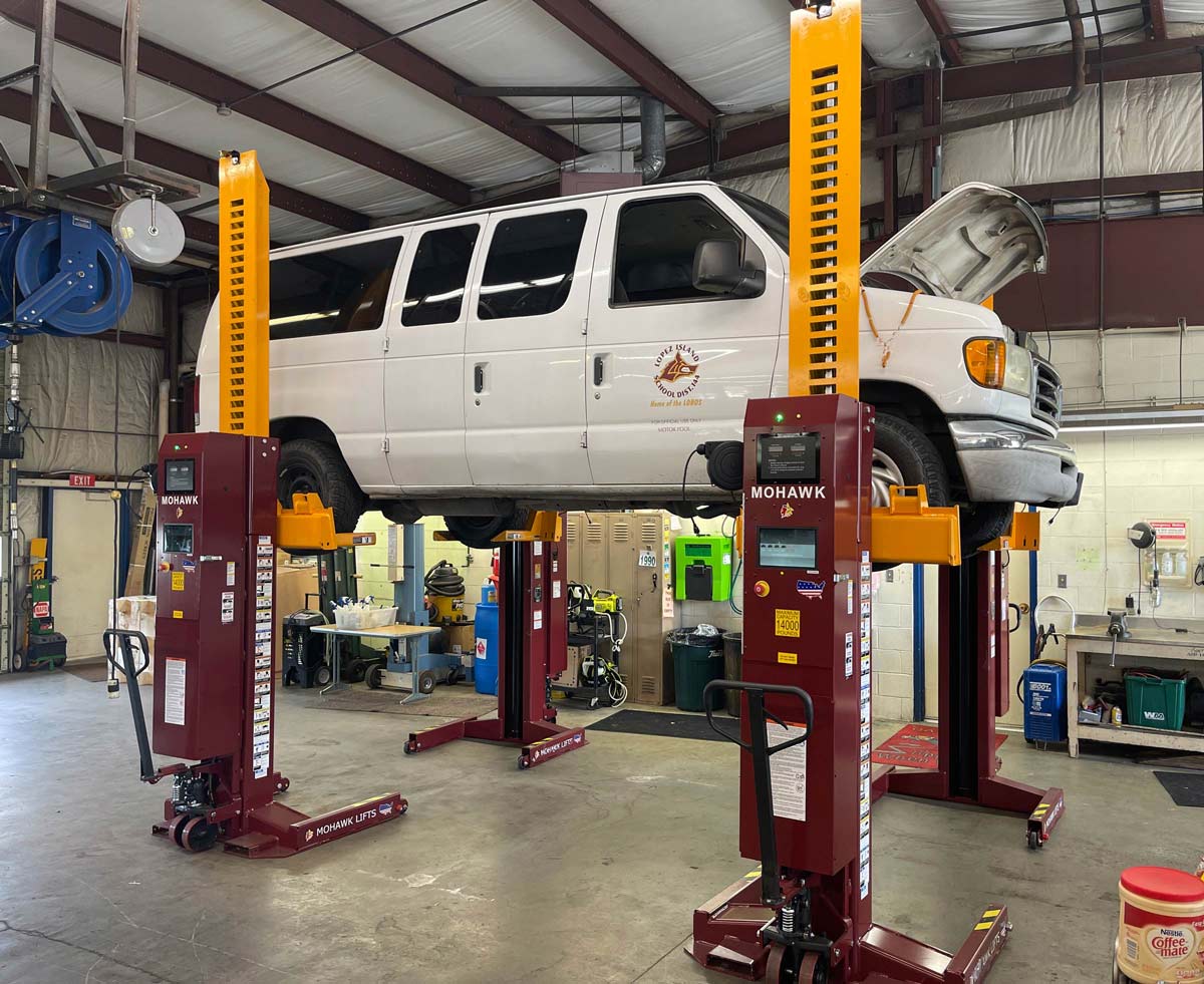 The Mohawk 800 Series Mobile Column Lifts provide 14,000- or 18,000-pound capacity per column, allowing total lift configurations of 56,000 or 72,000 pounds with a set of four. Each column can operate individually, in pairs, or as a synchronized group of up to eight, and the compact design lets a single operator roll the columns into position and transform any flat surface into a fully functional service bay within minutes.